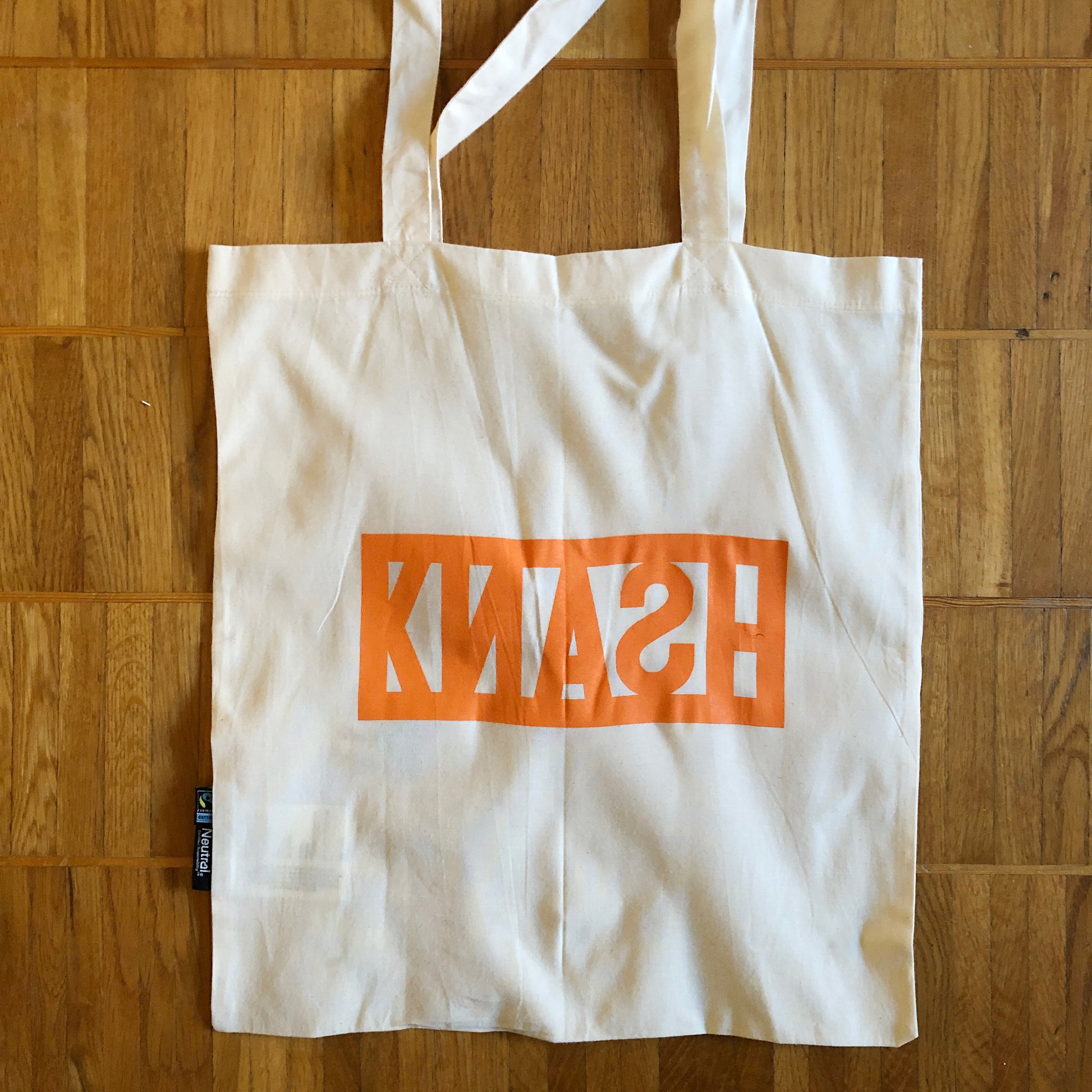 Fairtrademärkt bomullstygpåse med tryck av KNASH-logga.